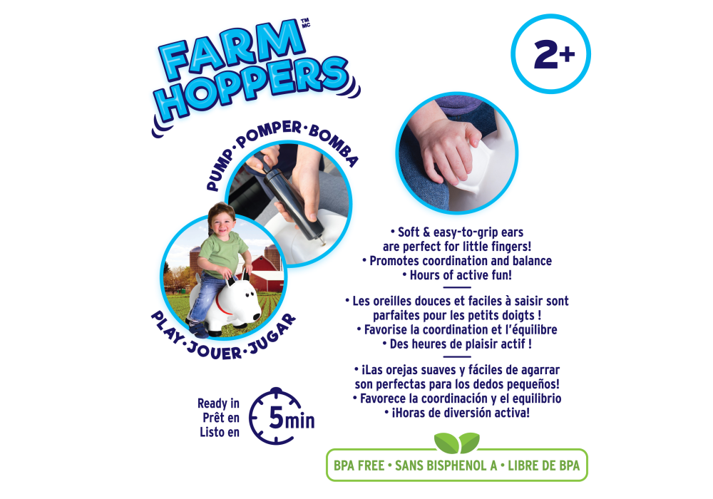 These bouncy animals are such a fun way to get your child moving and provide hours of entertainment. We found Farm Hoppers are made with a thicker plastic and have a tougher BPA-free skin. All animals have ears/horns to provide handles along with thick legs to provide more support as your child learns to balance. Each box contains a pump so you can adjust the amount of bounce your child will need.